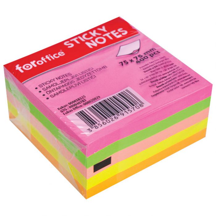 blok samoljepljiv kocka 75x75 mm 400l foroffice 5 boja neon